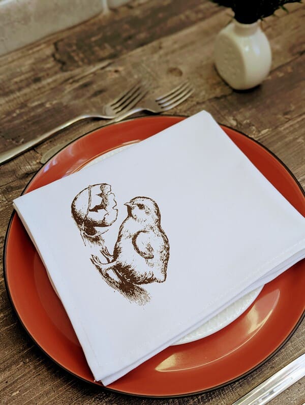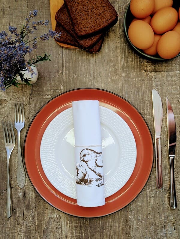 Почему стоит купить салфетки именно из этой коллекции? Во-первых, это 100% натуральный отбеленный хлопок - гипоаллергенный, дышащий и приятный на ощупь. Во-вторых, ручная работа: каждый принт наносится с вниманием к деталям, поэтому сервировочные салфетки получаются по-настоящему эксклюзивными. В-третьих, универсальность: милый сюжет с цыплёнком идеально вписывается в весеннюю тематику, но при этом не привязан жёстко к одному празднику. Такие красивые салфетки уместны и на пасхальном столе, и на дне рождения, и на романтическом ужине, и просто в будний день - чтобы порадовать себя.