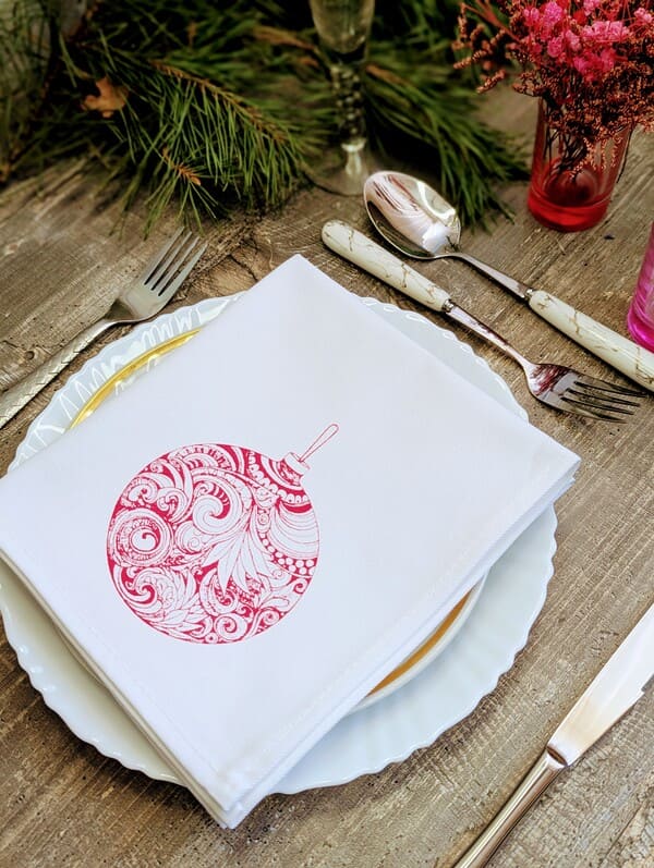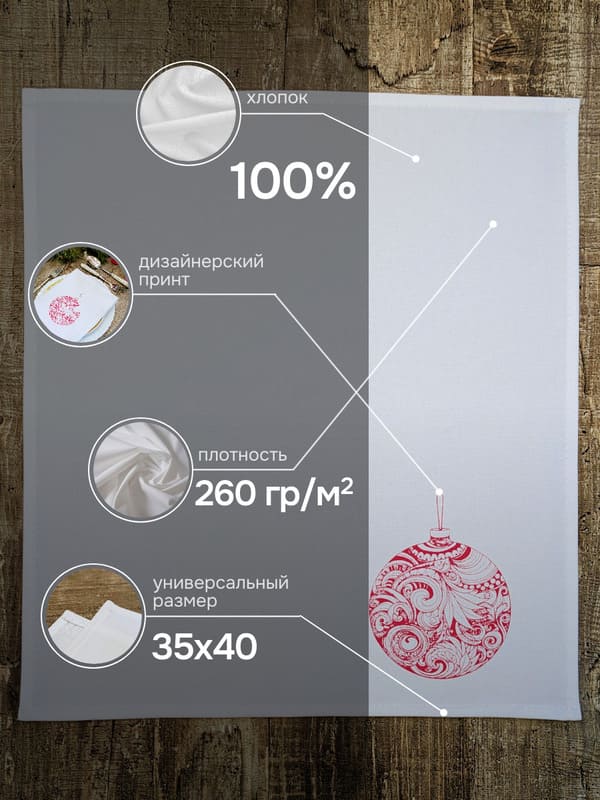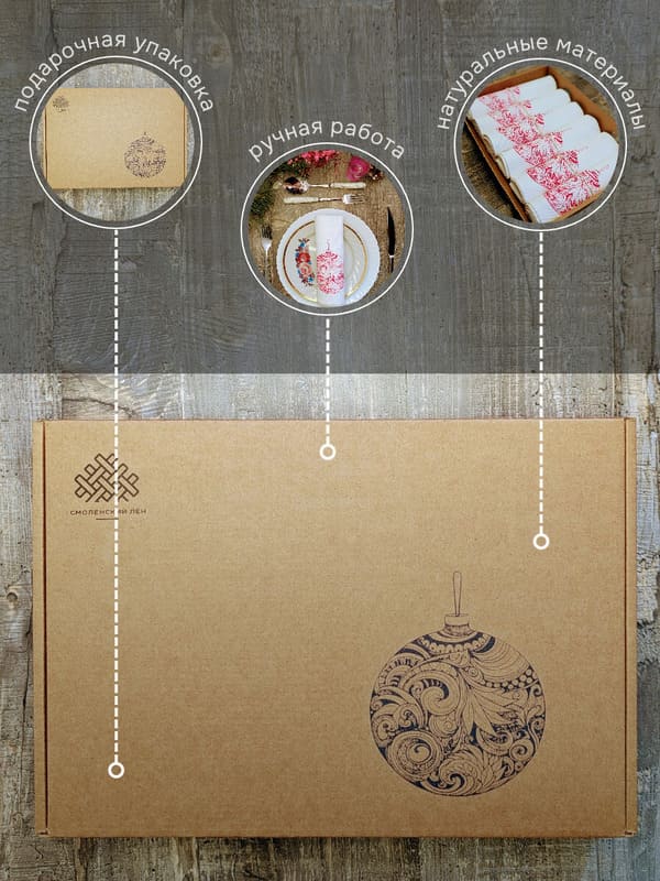 Эти хлопковые салфетки созданы вручную и украшены уникальным однотонным рисунком — новогодним шаром насыщенного вишнёвого оттенка. Цвет, сочетающий в себе глубину бордо и нежность спелой ягоды, придаёт сервировке особую теплоту и утончённость. При производстве продукции "Смоленский лён" используется белорусский лен (Оршанский льнокомбинат), костромской лен (Костромская льняная мануфактура), хлопок. Размер 35×40 см делает их идеальными как салфетки на стол под тарелки, так и самостоятельными элементами декора.