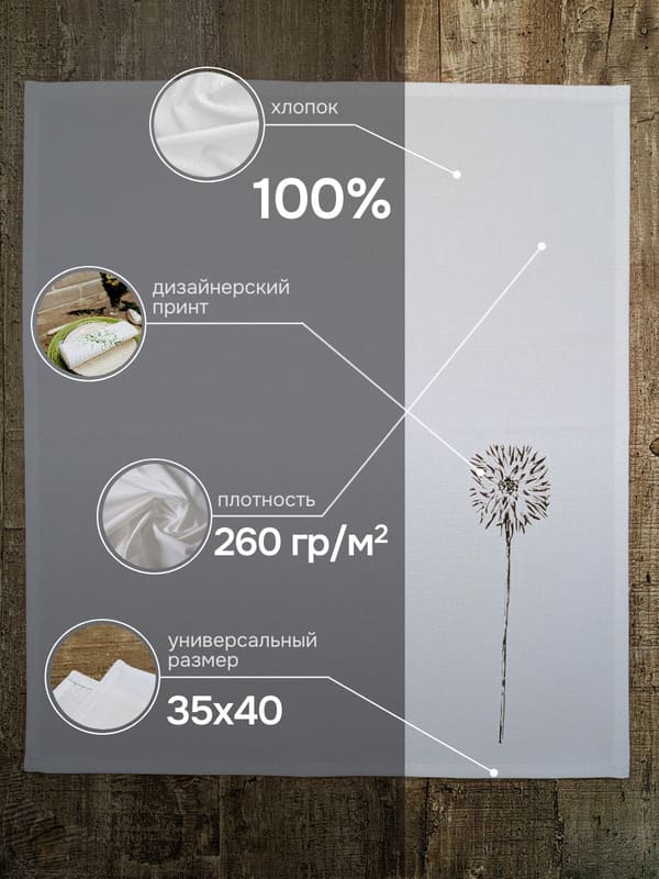 Каждая салфетка выполнена из 100% хлопка высшего качества с плотностью 260 гр/м². Благодаря этому материалу они отличаются долговечностью, мягкостью и экологичностью. Хлопковые салфетки не только приятны на ощупь, но и просты в уходе — их можно стирать и использовать многократно, сохраняя первоначальный вид.