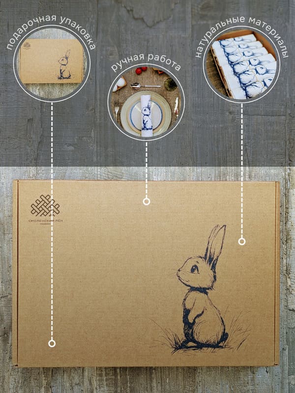 Набор упакован в подарочную коробку, поэтому его можно дарить без дополнительной упаковки. Это готовый презент, в который вложена душа. Особенно актуальны такие салфетки на Пасху. Кролик - один из главных символов этого праздника во многих странах, и в России он тоже набирает популярность. Так что пасхальный подарочный набор с такими салфетками будет очень к месту. Можно дополнить его крашеными яйцами, куличом или свечой - получится трогательный и душевный подарок на пасху. Бабушке, маме или девушке будет приятно получить такой набор на 8 марта, ведь весна - время обновления и уюта. На день рождения такие салфетки оценят хозяйки, которые любят красиво накрывать стол. А под Новый год они подарят капельку тепла и напомнят, что скоро весна.