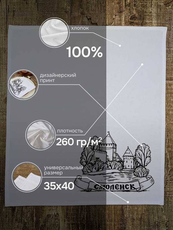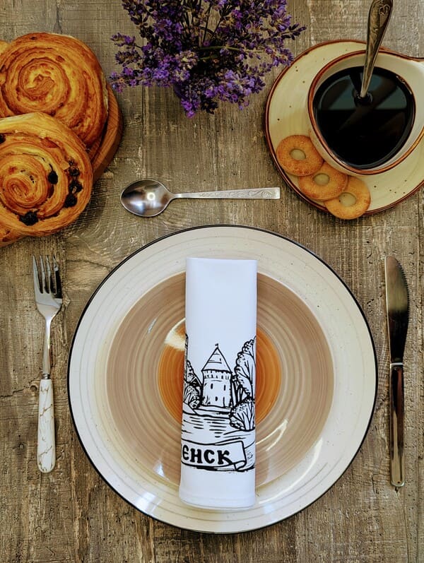 Это не просто салфетки на стол под тарелки — это ритуал. Когда вы раскладываете их перед обедом, вы словно приглашаете гостей в путешествие. Взгляд скользит по контурам башен, деревьям, ленте с надписью «Смоленск» — и в голове сразу всплывают запахи свежего хлеба из местной пекарни, звон колоколов, шум рынка на площади. Это не декор — это атмосфера. И она живёт в каждой нити.