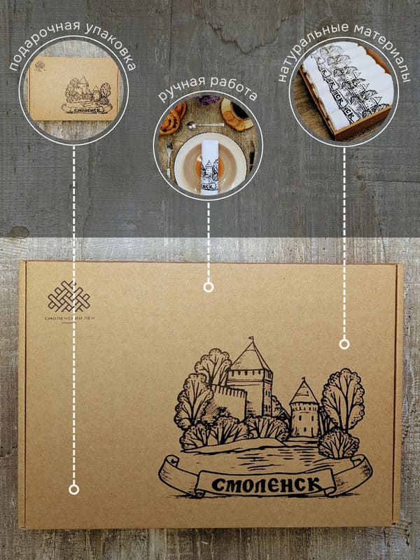 Лаконичная, из плотного картона, с матовой текстурой. Вы можете не мучиться с упаковкой — всё уже продумано. Просто завяжите ленточку, добавьте открытку — и готово. Подарок из Смоленска, который вызовет искреннюю улыбку и, возможно, даже слезу ностальгии.