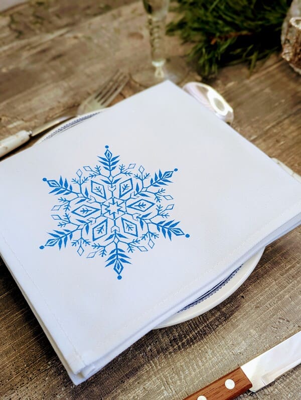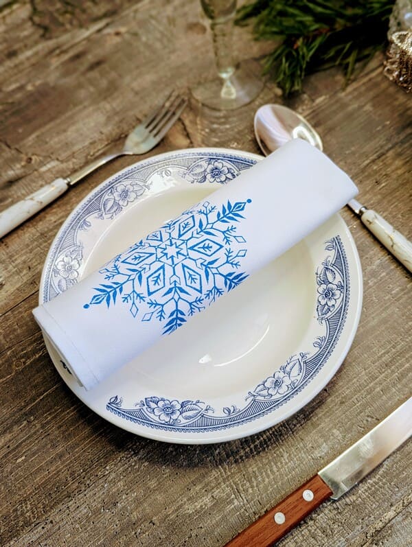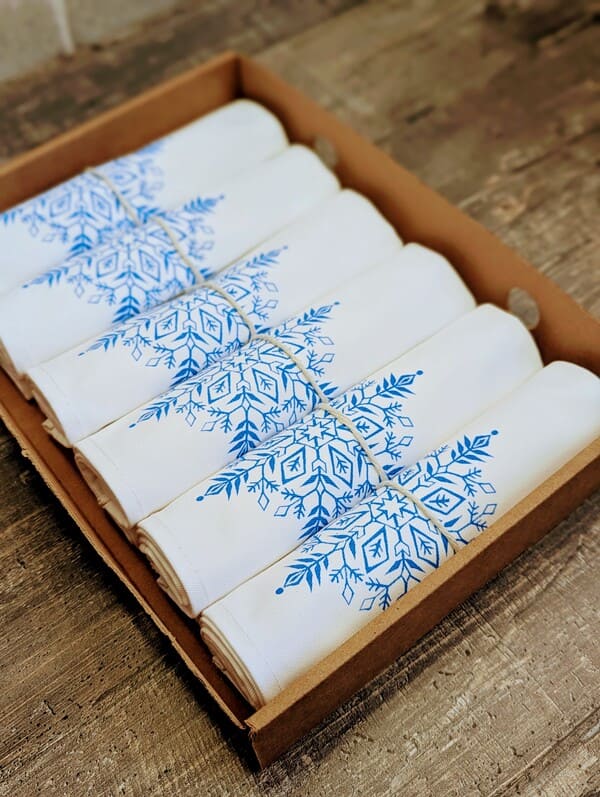 Каждая из этих красивых салфеток на стол — маленький шедевр. Рисунок? Одна-единственная снежинка, напечатанная синей краской. Не кричащая, не броская — сдержанная, как зимнее утро. Она не кричит «посмотри на меня!», а шепчет: «Я здесь, чтобы сделать твой день чуть теплее». Это не массовый принт, не штамп с конвейера — каждая снежинка чуть-чуть отличается, потому что сделана руками. Да, это ручная работа.