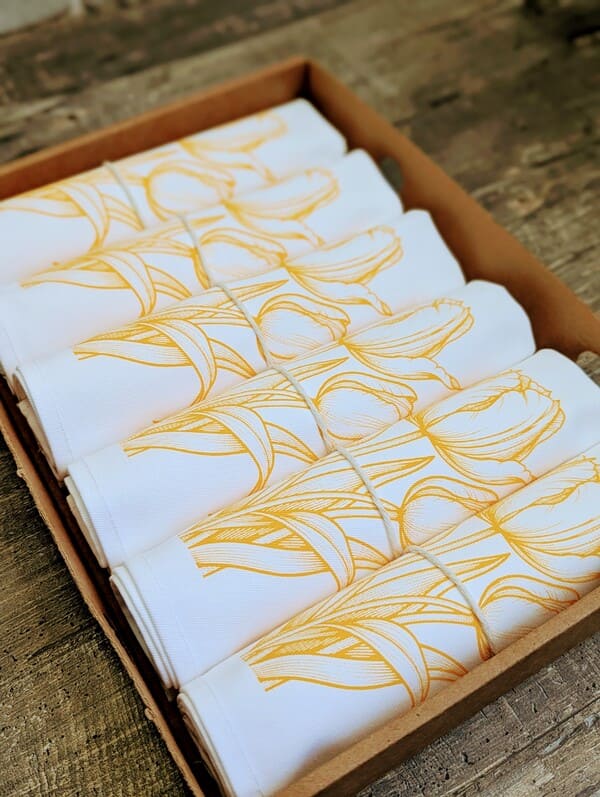 Набор «Солнечный букет» поставляется в элегантной подарочной коробке — никакой полиэтиленовой плёнки или скрепок. Коробка выполнена в минималистичном стиле, с тонкой желтой лентой и тиснением. Её можно сразу дарить — без дополнительной упаковки. А внутри — шесть хлопковых салфеток, аккуратно сложенных и уложенных в ряд. Это создаёт ощущение ценности с первой секунды.