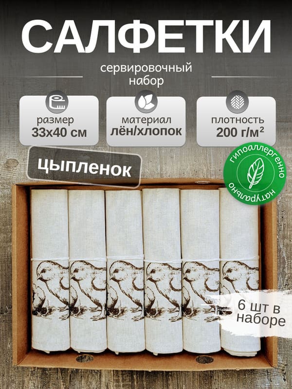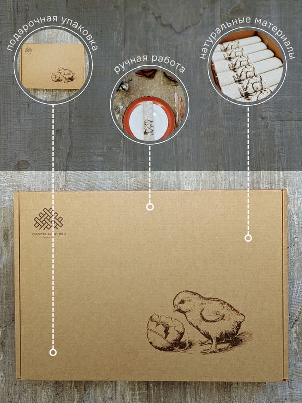 Упакованные в фирменную коробку, тканевые салфетки готовы стать подарком без дополнительной упаковки. Остаётся только добавить открытку с тёплыми словами. Сервировочные салфетки с цыплёнком - это больше, чем текстиль. Это история о зарождении жизни, о весне, о заботе. Они созданы, чтобы дарить радость.