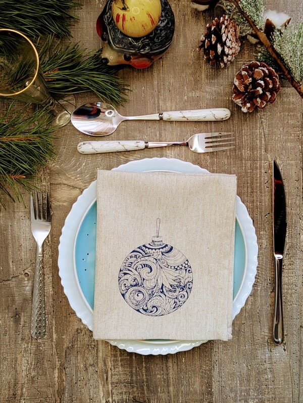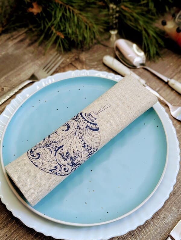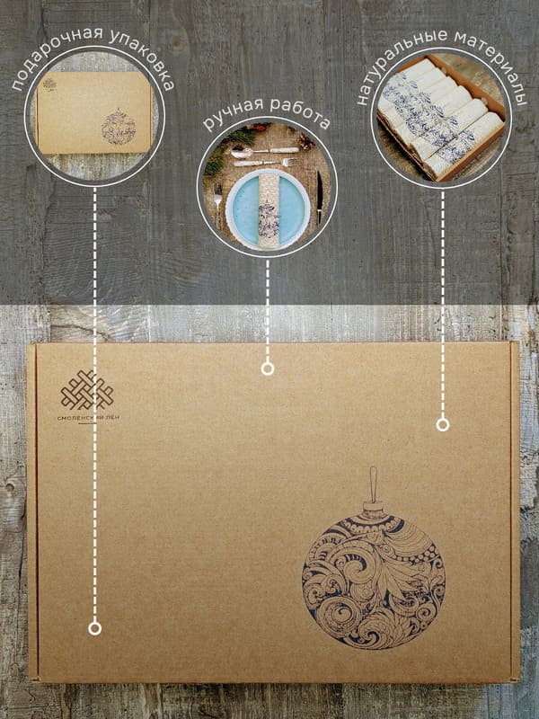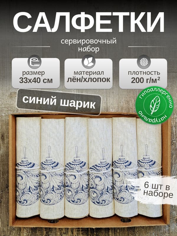 Именно для таких моментов — и для тех, кто их ценит — созданы эти льняные салфетки. Это не просто набор сервировочных салфеток, это маленькое чудо, которое можно положить на стол и забыть о суете. Потому что когда ты видишь перед собой эту салфетку — белую, как первый снег, с одним-единственным рисунком — синим новогодним шаром, украшенным узорами, будто вырезанными из старинной книжки, — ты сразу понимаешь: это не про магазины. Это про дом. Про заботу. Про то, как важно уметь замедлиться.