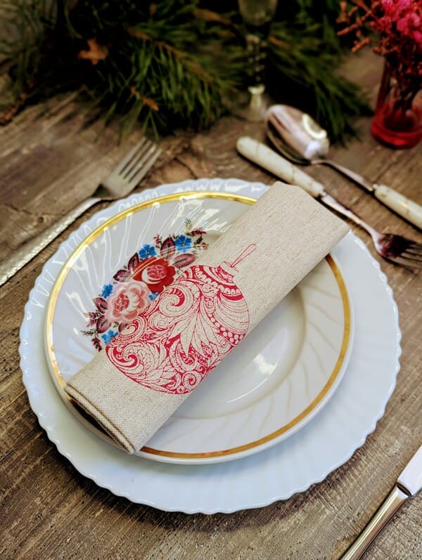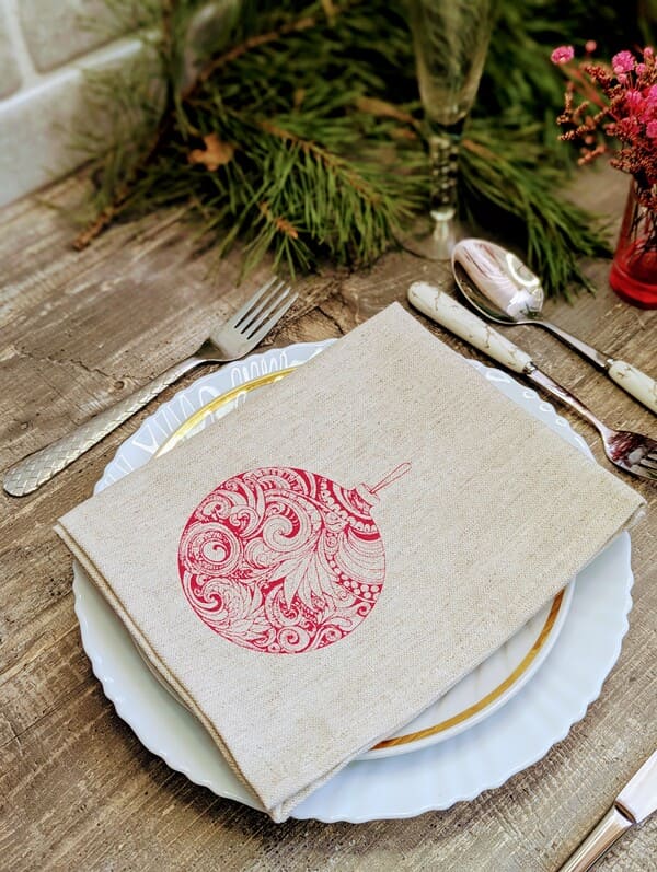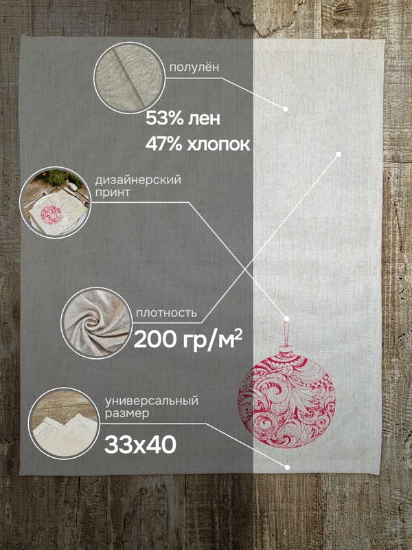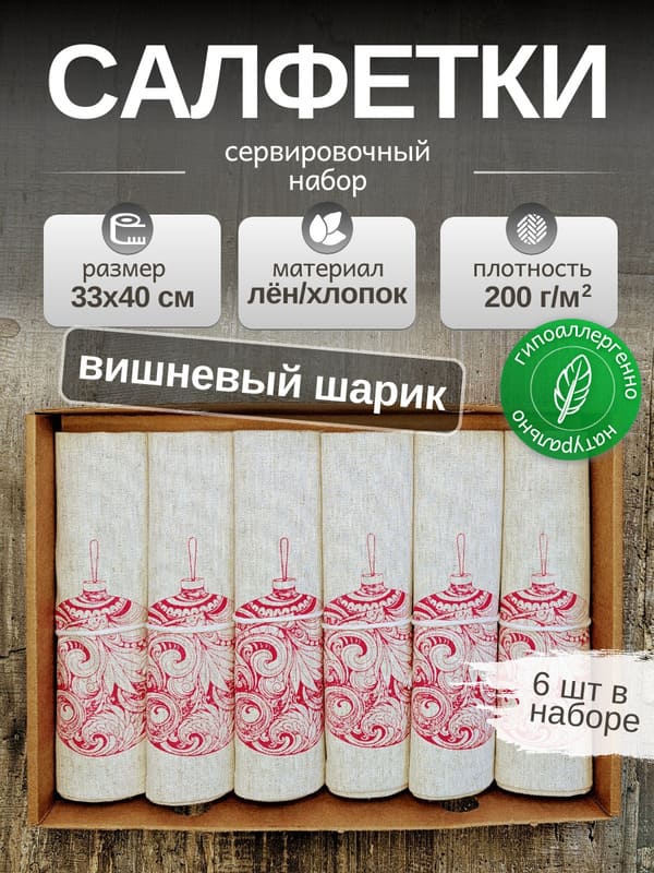 Однако истинной жемчужиной набора является его эксклюзивный рисунок. Однотонный новогодний шар цвета спелой вишни лаконично и изящно украшает каждое полотно. Этот глубокий, теплый оттенок несет в себе невероятную энергию уюта и праздника. Он прекрасно контрастирует с белоснежной скатертью, создает элегантный дуэт с классической новогодней палитрой золота и серебра, а в лучах мерцающих гирлянд на новогодней елке кажется, что эти вишневые шары излучают собственное, теплое свечение. Каждая салфетка сервировочная на стол из этого набора — это самостоятельное художественное высказывание, которое задает тон всему застолью.