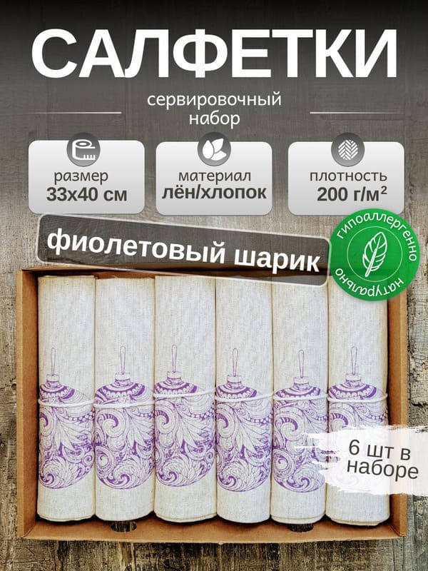 Итак, если вы ищете по-настоящему душевный, стильный и практичный подарок на Рождество или Новый год, который будет радовать долгие годы, ваш поиск завершен. Эти льняные салфетки с фиолетовым шаром — не просто красивый аксессуар. Это символ вашей заботы, билет в мир элегантного праздника и та самая магическая деталь, что превращает ожидание чуда в само чудо. Подарите близким или себе не просто красивые салфетки, подарите «Фиолетовую магию Рождества».