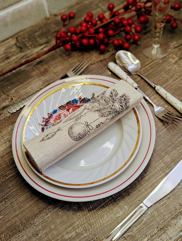 Кстати, хлопковые салфетки в чистом виде — вещь хорошая, но лён в смеси добавляет характер. В ассортименте нашего магазина есть не только наборы льняных салфеток на стол, но и хлопковые салфетки с этим же принтом и использовать из также можно и для повседневного использования, но они особенно раскрываются в праздники — когда каждая деталь сервировки имеет значение.