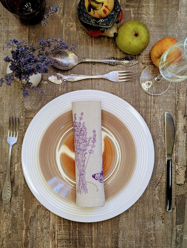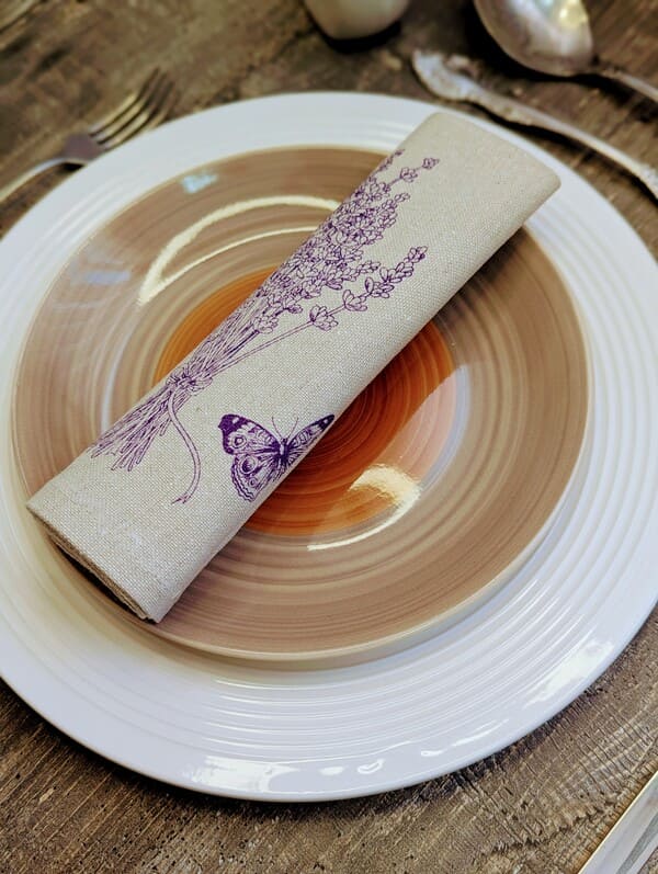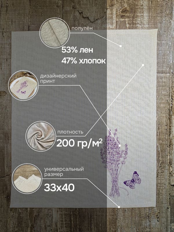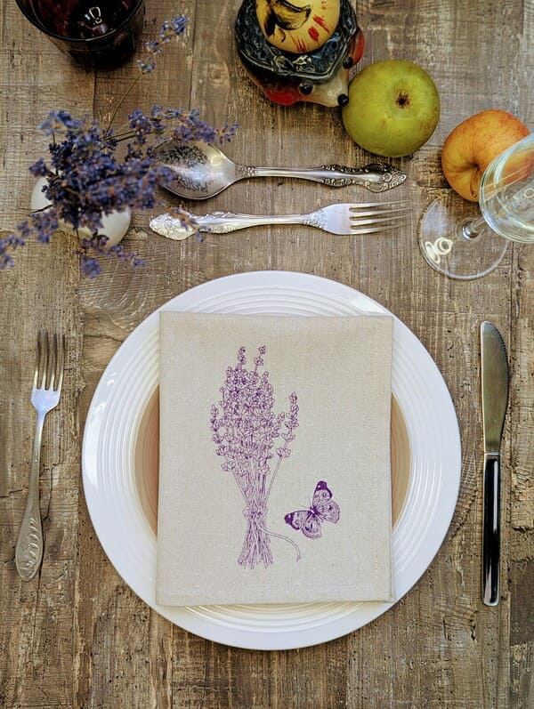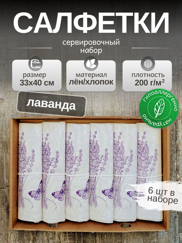 Главная ценность набора — его эксклюзивность. На каждом полотне вручную нанесен изящный рисунок: веточка лаванды в ее естественном, лавандовом цвете и легкая бабочка, устремленная к цветку. Этот образ — символ безмятежности, летнего утра и тихой радости. Монохромный принт выглядит утонченно и современно, он не кричит, а нашептывает. Ручная работа наделяет каждую деталь душой — легкая неидеальность мазков лишь подчеркивает ценность ремесла. Это уже не просто тканевые салфетки, а камерные произведения, создающие особое настроение. Когда вы решаете салфетки льняные купить с такой историей, вы выбираете не серийный продукт, а уникальный предмет интерьера. Такие красивые салфетки на стол становятся тихим, но выразительным акцентом в сервировке.