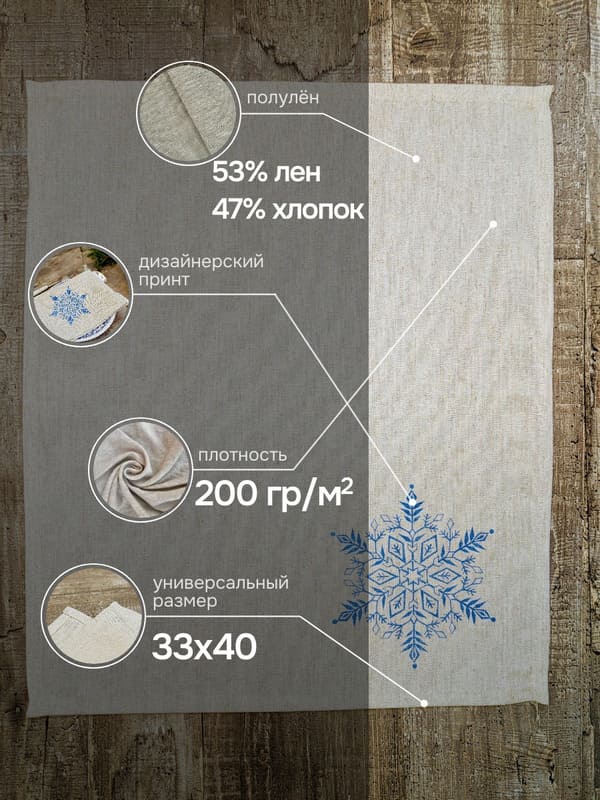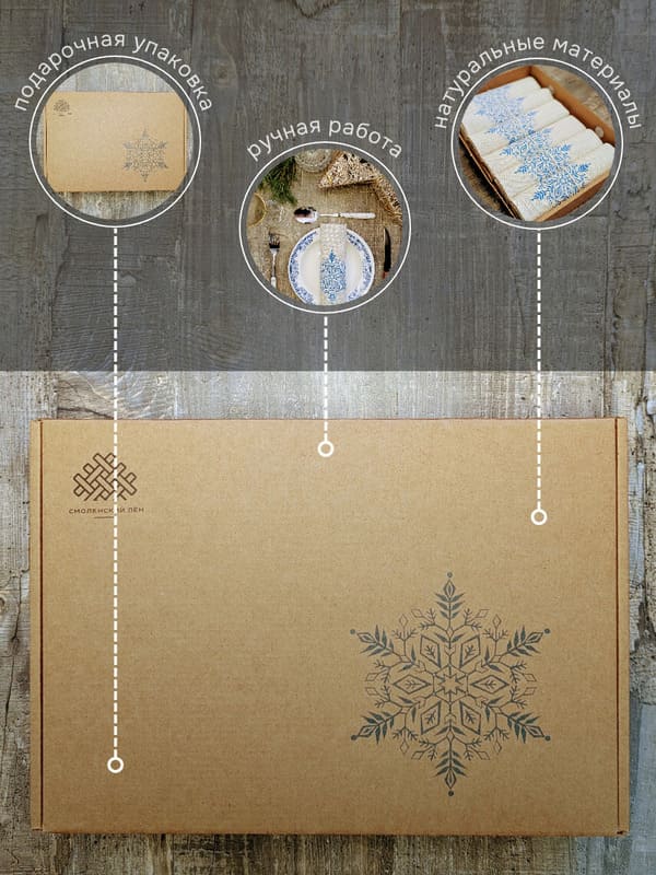 А потом на эту идеальную натуральную основу ложится та самая уникальная магия — рисунок. При производстве продукции "Смоленский лён" используется белорусский лен (Оршанский льнокомбинат), костромской лен (Костромская льняная мануфактура), хлопок. Нежная, ажурная снежинка глубокого синего цвета. Это не кричащий зимний принт, а скорее тонкий намёк, изящный штрих, словно оставленный морозом на окне. Каждая снежинка в природе неповторима, и здесь эта метафора обретает буквальный смысл: благодаря ручной работе, ни один рисунок не является абсолютной копией другого. Вы приобретаете по-настоящему эксклюзивную вещь. Эта салфетка на стол под тарелки сразу задает тон всей композиции, становясь ее смысловым центром. Синий цветок-снежинка на натуральном льняном фоне — это сочетание свежести, спокойствия и безупречного вкуса.
