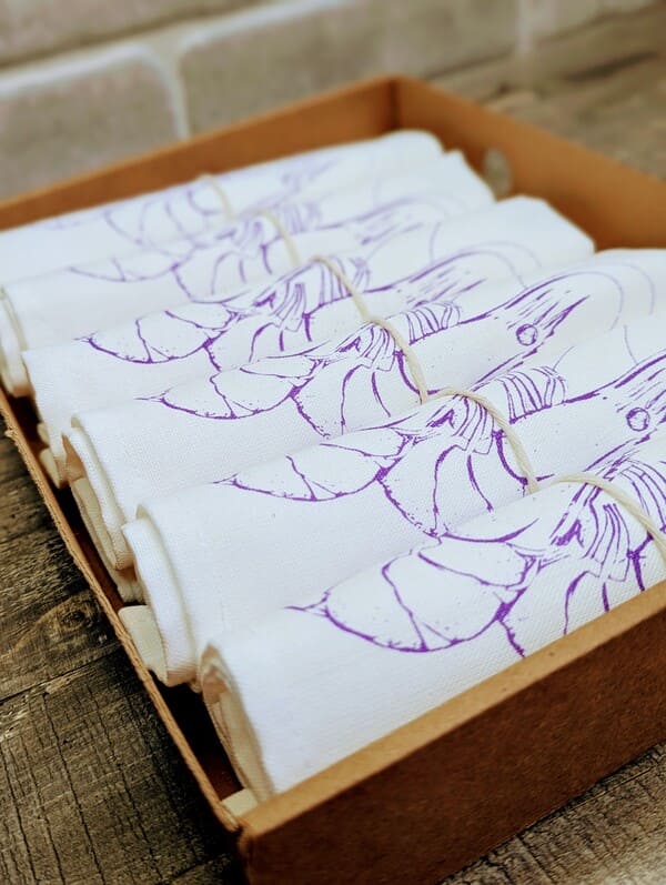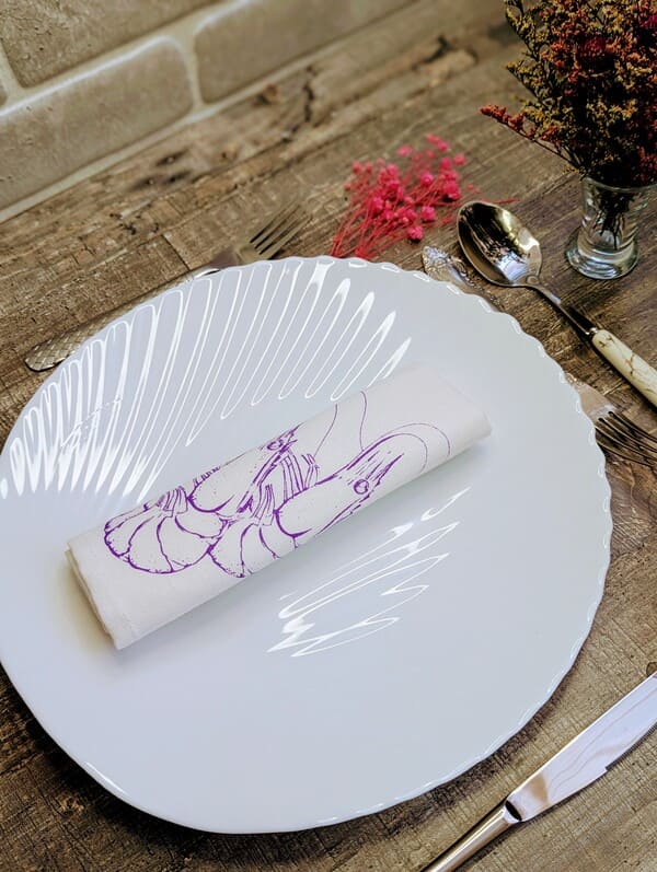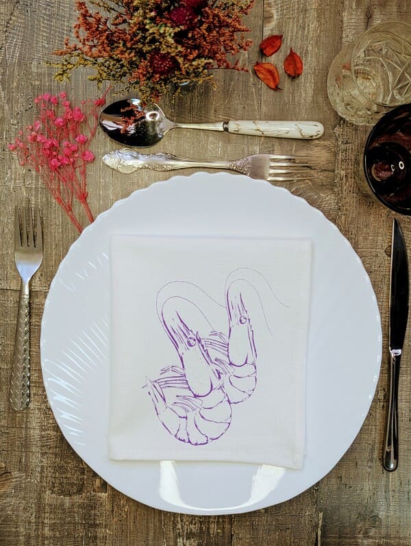 «Морской акцент: набор льняных салфеток с креветками для идеальной сервировки»